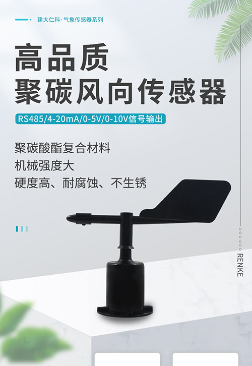 采用聚碳型材制造的風向傳感器,耐老化,防腐防銹能力相對ABS塑料更強,使用周期更長,穩(wěn)定性更好,高承受力,體積小,外觀精美。8個指示方向、16個指示方向或0~360°