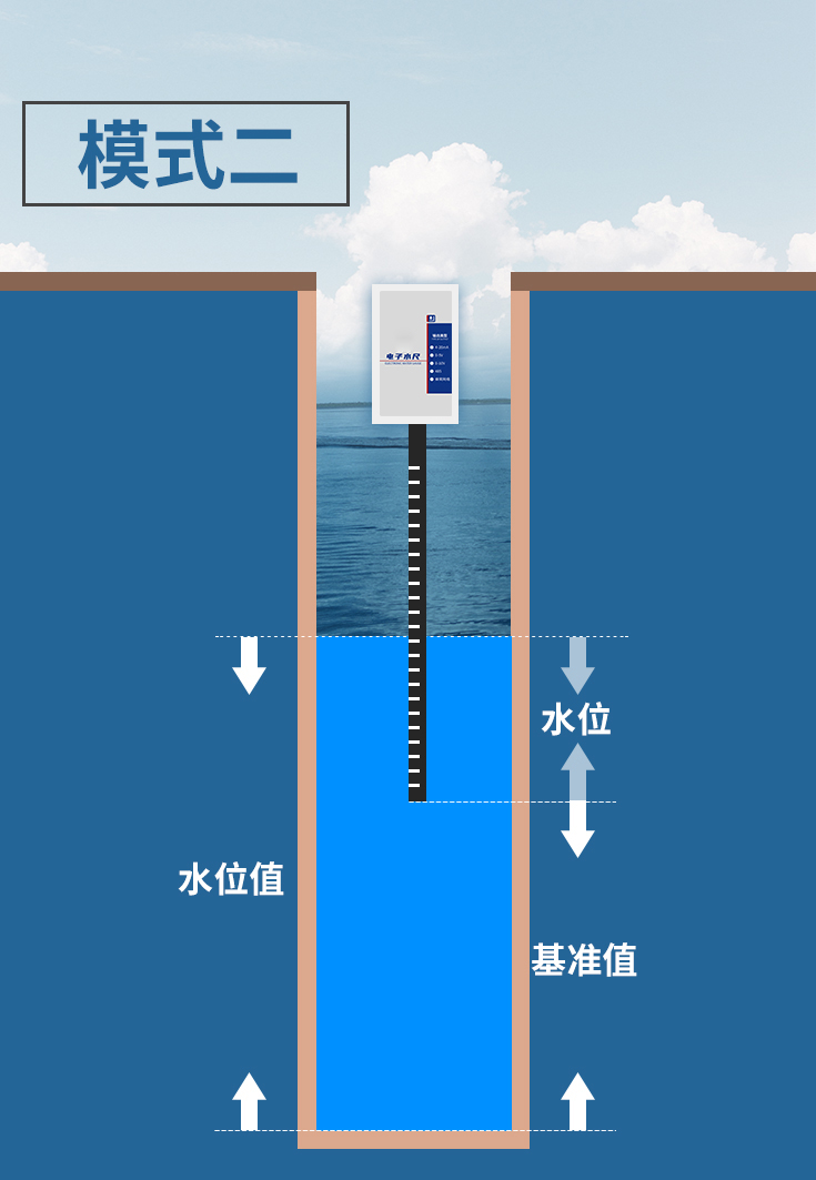 1、 空高模式:水位值=水尺總長(zhǎng)-水位+基準(zhǔn)值