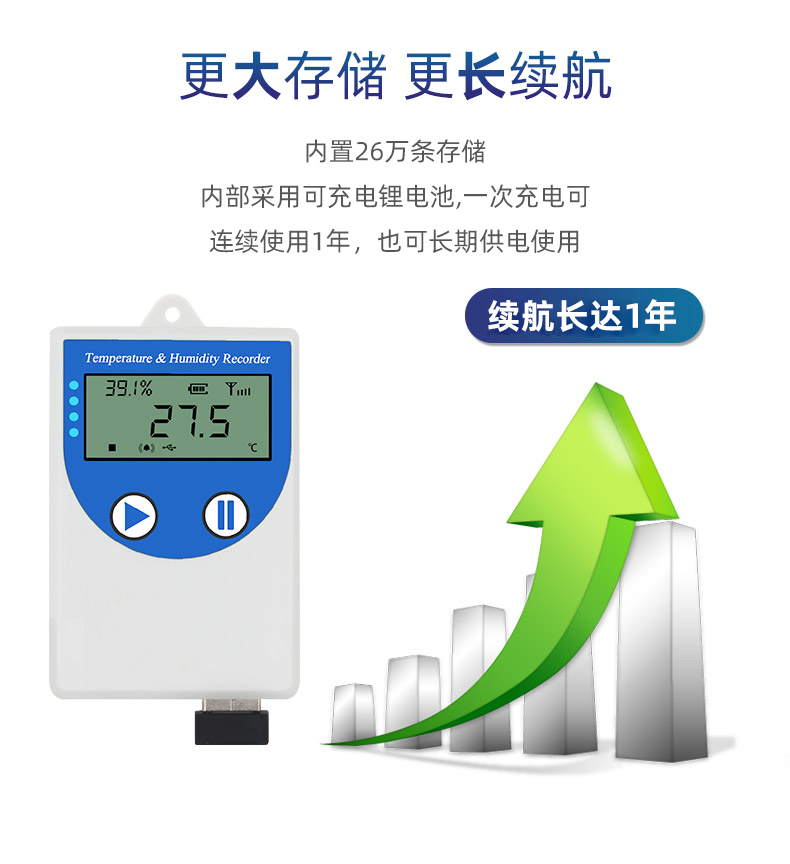 建大仁科智能溫濕度記錄儀COS-04自帶高精度溫濕度傳感器,可進行溫濕度測量,且自帶存儲功能,可記錄8萬條溫濕度數(shù)據(jù),高配版可記錄26萬條溫濕度數(shù)據(jù)。設(shè)備配備液晶屏,可實時顯示溫濕度數(shù)據(jù),采用大容量可充電鋰電池,充電一次可以使用一年,方便運輸人員的使用。