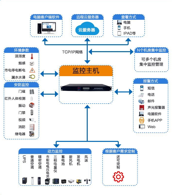 建大仁科的配電室環(huán)境監(jiān)測系統(tǒng)由溫濕度傳感器、水浸傳感器、空調(diào)控制器、空氣質(zhì)量傳感器等檢測設(shè)備、監(jiān)控主機(jī)以及監(jiān)測平臺組成,能夠?qū)崟r采集配電室環(huán)境數(shù)據(jù),并上傳至監(jiān)控軟件平臺,形成遠(yuǎn)程集中監(jiān)控+數(shù)據(jù)分析+智能干預(yù)模式,實現(xiàn)配電室的全信息采集以及自動化運行管理、安全防護(hù)。