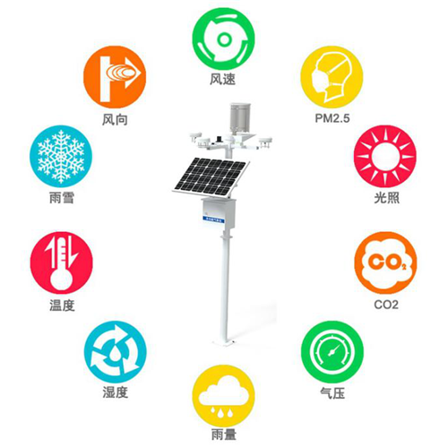 氣象傳感器:傳感器部分的主要作用是監(jiān)測氣象要素信息,通過安裝雨量筒、氣象百葉盒、風(fēng)速風(fēng)向傳感器等設(shè)備,來監(jiān)測風(fēng)速、風(fēng)向、PM2.5、光照、二氧化碳、氣壓、雨量、空氣溫度、空氣濕度、雨雪等多種氣象因素。