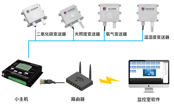 環(huán)境監(jiān)控主機RS-XZJ-100-Y能夠掛接32臺養(yǎng)殖場內(nèi)安裝的485型變送器,通過GPRS/4G無線或485、以太網(wǎng)有線方式,將前端傳感器采集的數(shù)據(jù)傳輸?shù)江h(huán)境監(jiān)控平臺。