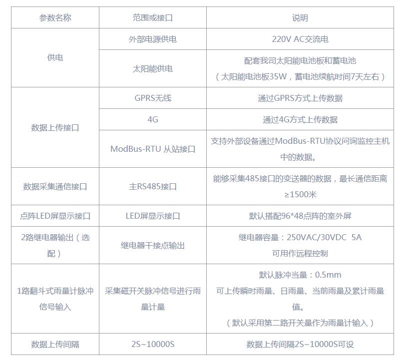 自動氣象站是一款氣象站專用控制主機。該設(shè)備具有 1 路 ModBus- RTU 主站接口(可通過此接口連接我司 485 變送器:1 路風(fēng)速,1 路風(fēng)向,4 路土壤溫度+ 水分,4 路土壤 EC+PH,1 路空氣溫濕度,1 路噪聲,1 路二氧化碳,1 路大氣壓力,1 路 光照,1 路雨雪狀態(tài),1 路紫外線,1 路總輻射,1 路一氧化碳,1 路臭氧,1 路二氧化氮, 1 路二氧化硫,1 路硫化氫,1 路氧氣,1 路空氣質(zhì)量,1 路負(fù)氧離子)、1 路雨量采集(總雨量+瞬時雨量+日雨量+當(dāng)前雨量)、,2 路繼電器輸出(選配);該設(shè)備可通過GPRS方式將數(shù)據(jù)上傳值監(jiān)控軟件平臺,同時該監(jiān)控主機還帶有 1 路 ModBus-RTU 從站接口也可將數(shù)據(jù)通過 485 通信的方式上傳至客戶的監(jiān)控軟件或 PLC 組態(tài)屏等;該主機還能外接1路LED屏顯示(點陣數(shù) 96*48)。